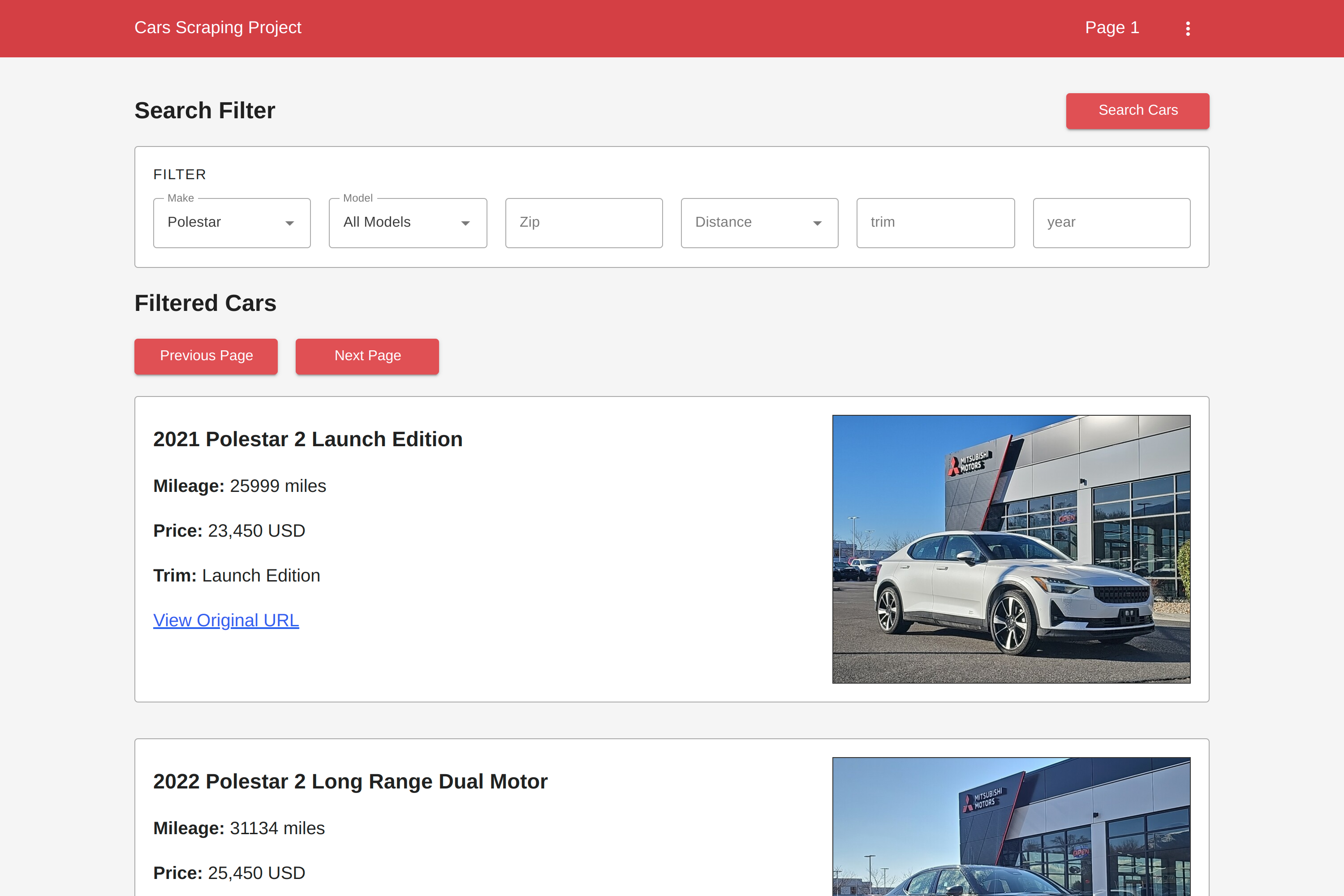 A web scraper designed to collect data from multiple websites to assist users in researching car prices, specifications, reviews, and availability. It provides users with up-to-date car market insights.